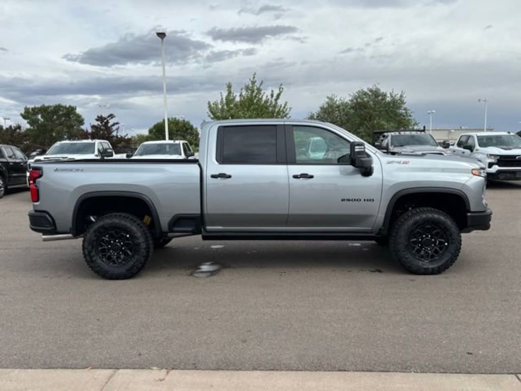 We look forward to serving you! Gooseneck/5th Wheel Prep Package (Black Chevytec Spray-On Bedliner), Preferred Equipment Group 3LT (120-Volt Bed Mounted Power Outlet, 120-Volt Interior Power Outlet, 170 Amp Alternator, All-Weather Floor Liners (LPO), Bed View Camera w/2 Trailer Camera Provisions, Bluetooth® For Phone, Chevrolet Connected Access Capable, Color-Keyed Carpeting Floor Covering, Compass, Deep-Tinted Glass, Electric Rear-Window Defogger, EZ Lift Power Lock & Release Tailgate, Front LED Fog Lamps, Front Rain-Sensing Wipers, Heated 2nd Row Outboard Seats, Heated Steering Wheel, High Gloss Black Mirror Caps, Hitch Guidance w/Hitch View, In-Vehicle Trailering App System, Keyless Open & Start, LED Cargo Area Lighting, LED Smoked Amber Roof Marker Lamps, Manual Tilt & Telescoping Steering Column, Multi-Flex Tailgate, OnStar Services Capable, Power Door Locks, Power Front Windows w/Driver Express Up/Down, Power Front Windows w/Passenger Express Up/Down, Power Rear Windows w/Express Down, Power Sliding Rear Window w/Defogger, Push Button Start, Rear Cross Traffic Alert, Rear Wheelhouse Liners, Remote Vehicle Starter System, SiriusXM w/360L Trial Subscription, Steering Wheel Audio Controls, Trailer Camera Provisions, Ultrasonic Front & Rear Park Assist, Unauthorized Entry Theft-Deterrent System, Universal Home Remote, Wi-Fi Hotspot Capable, Wireless Charging, Wireless Phone Projection, and Wrapped Steering Wheel), Snow Plow Prep/Camper Package (220 Amp Alternator), Technology Package (15 Diagonal Multicolor Head-Up Display, Adaptive Cruise Control, and Rear Camera Mirror), Up-Level Rear Seat w/Storage Package, ZR2 Bison Edition (AEV Front Bumper, AEV Rear Bumper, Front AEV Brand Floor Liners (LPO), and Wheels: 18 x 9 Carbon Flash Metallic w/AEV Logo), ZR2 Suspension Package, 10-Speed Automatic, 4WD, Jet Black/Graystone Leather, 10-Way Power Driver Seat Adjuster w/Lumbar, 10-Way Power Passenger Seat Adjuster w/Lumbar, 4-Wheel Disc Brakes, 7 Speakers, 720 Cold-Cranking Amps Heavy-Duty Battery, ABS brakes, Air Conditioning, Alloy wheels, AM/FM radio: SiriusXM with 360L, Apple CarPlay/Android Auto, Auto High-beam Headlights, Auto-dimming door mirrors, Auto-dimming Rear-View mirror, Automatic temperature control, BOSE Premium 7-Speaker Sound System, Brake assist, Bumpers: chrome, Delay-off headlights, Driver door bin, Driver Memory, Driver vanity mirror, Dual front impact airbags, Dual front side impact airbags, Durabed Pickup Bed, Electronic Stability Control, Emergency communication system: OnStar, Engine Block Heater, Exhaust Brake, Floor-Mounted Center Console, Front anti-roll bar, Front Bucket Seats, Front Center Armrest, Front dual zone A/C, Front fog lights, Front reading lights, Front wheel independent suspension, Fully automatic headlights, Garage door transmitter, Heads-Up Display, Heated door mirrors, Heated Driver & Front Outboard Passenger Seating, Heated front seats, Heated rear seats, Heated steering wheel, High Idle Switch, Illuminated entry, Low tire pressure warning, Memory seat, Occupant sensing airbag, Outside temperature display, Overhead airbag, Overhead console, Panic alarm, Passenger door bin, Passenger vanity mirror, Perforated Leather Seat Trim, Power door mirrors, Power driver seat, Power passenger seat, Power steering, Power Sunroof, Power windows, Power-Retractable Black Assist Steps, Premium audio system: Chevrolet Infotainment 3 Premium, Radio: Chevrolet Infotainment 3 Premium System, Rain sensing wipers, Rear reading lights, Rear seat