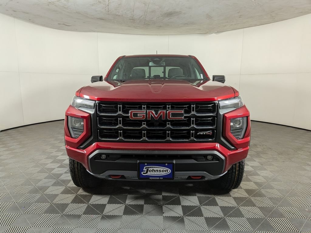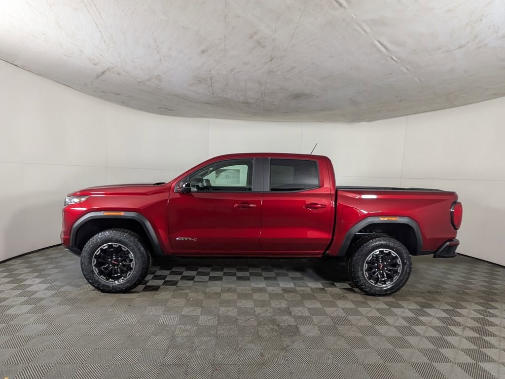 We look forward to serving you! Canyon Safety Plus Package (Blind Zone Steering Assist with Trailering, Rear Cross Traffic Braking, and Ultrasonic Rear Park Assist), 4WD, 120-Volt Bed Mounted Power Outlet, 2 1st Row USB Charge/Data Ports, 2 Rear USB Ports in Center Console (Charge-Only), 3.42 Rear Axle Ratio, 4-Way Manual Front Passenger Seat Adjuster, 4-Wheel Disc Brakes, 6 Speakers, 6-Speaker Audio System Feature, 8-Way Power Driver Seat Adjuster, ABS brakes, Air Conditioning, Alloy wheels, AM/FM radio: SiriusXM with 360L, Apple CarPlay/Android Auto, Auto High-beam Headlights, Auto-dimming Rear-View mirror, Automatic Emergency Braking, Automatic Stop/Start, Automatic temperature control, Brake assist, Bumpers: body-color, Canyon Pro Safety, Cloth/CoreTec Seat Trim, Compass, Delay-off headlights, Driver and Front Passenger Illuminated Visors, Driver door bin, Driver Mode Selector, Driver vanity mirror, Dual front impact airbags, Dual front side impact airbags, Dual-Zone Automatic Climate Control Air Conditioning, Electronic Stability Control, Emergency communication system: OnStar, EZ-Lift and Lower Tailgate, Following Distance Indicator, Forward Collision Alert, Front anti-roll bar, Front Bucket Seats, Front Center Armrest, Front dual zone A/C, Front fog lights, Front LED Fog Lamps, Front Passenger Seatback Map Pocket, Front Pedestrian and Bicyclist Braking, Front reading lights, Front wheel independent suspension, Heated door mirrors, Heated Driver and Front Passenger Seats, Heated front seats, Illuminated entry, Inside Rear-View Auto-Dimming Mirror, IntelliBeam Automatic High Beam on/Off, Interior Overhead Courtesy Light with Dual Reading Lamp, Lane Keep Assist with Lane Departure Warning, Low tire pressure warning, MultiStow Tailgate Storage Compartment, Navigation System, Occupant sensing airbag, Off-Road Suspension, Outside temperature display, Overhead airbag, Overhead console, Panic alarm, Passenger door bin, Passenger vanity mirror, Power door mirrors, Power Driver Lumbar Control Seat Adjuster, Power driver seat, Power steering, Power windows, Radio data system, Radio: 11.3 Diagonal Premium GMC Infotainment System, Rear of Console 120-Volt Power Outlet, Rear reading lights, Rear step bumper, Rear window defroster, Remote keyless entry, Remote Vehicle Starter System, Security system, SiriusXM with 360L, Speed control, Speed-sensing steering, Split folding rear seat, Steering wheel mounted audio controls, Stop/Start System Disable Button Engine Control, Tachometer, Tailgate Keyed Cylinder Lock, Telescoping steering wheel, Til and Telescopic Manual Steering Column, Tilt steering wheel, Traction control, Trip computer, Variably intermittent wipers, Wheels: 18 x 8.5 Gloss Black Aluminum, and Wireless Apple CarPlay/Wireless Android AutO.
