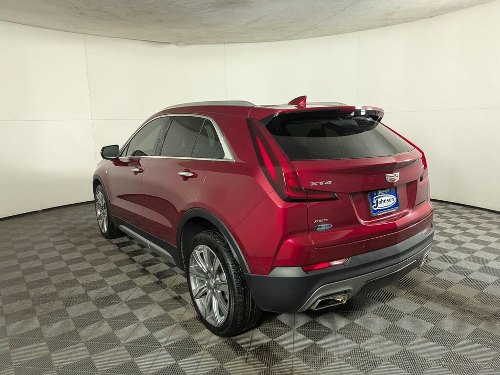2023 Cadillac XT4 Premium Luxury Radiant Red Tintcoat AWD 2.0L I4 Turbocharged 9-Speed AutomaticOdometer is 31899 miles below market average! 22/29 City/Highway MPGVisit www.johnsonautoplaza.com for more information. Feel free to browse our inventory online, request more information about vehicles, set up a test drive or inquire about financing.We look forward to serving you! Cold Weather Package (Heated Driver & Front Passenger Seats, Heated Rear Outboard Seating Positions, and Heated Steering Wheel), Comfort & Convenience Package (4-Way Driver Seat Power Lumbar Control, 4-Way Passenger Seat Power Lumbar Control, 8-Way Power Passenger Seat Adjuster, Power Lumbar Massage Driver Seat, Power Lumbar Massage Front Passenger Seat, and Ventilated Driver & Front Passenger Seats), Driver Assist Package (Adaptive Cruise Control, Enhanced Automatic Emergency Braking, and Reverse Automatic Braking), Floor Liner Package (LPO) (Cargo Liner (LPO) and Front & Rear All-Weather Floor Liners (LPO)), Preferred Equipment Group 1SE (2-Way Driver Seat Power Lumbar Control, 2-Way Passenger Seat Power Lumbar Control, 4.2 Diagonal Color Display Driver Info Center, 6-Way Power Passenger Seat Adjuster, 7-Speaker Audio System w/Auxiliary Amplifier, Auto-Dimming Inside Rear-View Mirror, Automatic Emergency Braking, Electronic Cruise Control w/Set & Resume Speed, Front & Rear Park Assist, HD Rear Vision Camera, and Manual Rake & Telescoping Steering Column), Radio: Cadillac User Experience w/Embedded Nav (Bose Centerpoint Surround Sound 13-Speaker System, HD Radio, SD Card Reader, SiriusXM w/360L, and Wireless Apple CarPlay/Wireless Android Auto), 3.47 Axle Ratio, 4-Wheel Disc Brakes, 7 Speakers, 8-Way Power Driver Seat Adjuster, ABS brakes, Air Conditioning, Alloy wheels, AM/FM radio: SiriusXM with 360L, Apple CarPlay/Android Auto, Auto High-beam Headlights, Auto-dimming door mirrors, Auto-dimming Rear-View mirror, Automatic temperature control, Brake assist, Bumpers: body-color, Compass, Delay-off headlights, Driver door bin, Driver vanity mirror, Dual front impact airbags, Dual front side impact airbags, Dual Panel Glass Sunroof w/Power Tilt/Sliding, Electronic Stability Control, Emergency communication system: OnStar and Cadillac connected services capable, Four wheel independent suspension, Front anti-roll bar, Front Bucket Seats, Front Center Armrest, Front dual zone A/C, Front License Plate Bracket, Front reading lights, Fully automatic headlights, Garage door transmitter, Heated door mirrors, Illuminated entry, Knee airbag, Leather Seating Surfaces, Leather steering wheel, Low tire pressure warning, Memory seat, Occupant sensing airbag, Outside temperature display, Overhead airbag, Overhead console, Panic alarm, Passenger door bin, Passenger vanity mirror, Power door mirrors, Power driver seat, Power Liftgate, Power passenger seat, Power steering, Power windows, Radio data system, Radio: Cadillac User Experience AM/FM Stereo, Rain sensing wipers, Rear anti-roll bar, Rear reading lights, Rear seat center armrest, Rear window defroster, Rear window wiper, Remote keyless entry, Roof rack: rails only, Security system, Speed control, Speed-sensing steering, Split folding rear seat, Spoiler, Standard Suspension, Steering wheel mounted audio controls, Tachometer, Telescoping steering wheel, Tilt steering wheel, Traction control, Trip computer, Turn signal indicator mirrors, Variably intermittent wipers, Voltmeter, Wheels: 18 10-Spoke Pearl Nickel Finish Alloy, and Wheels: 20 Dynamic 9-Spoke AlloY.