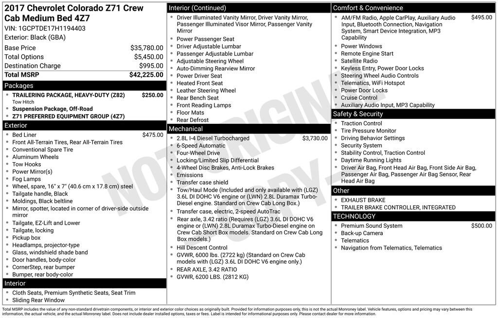 2017 Chevrolet Colorado Z71 Black 4WD 2.8L Duramax Turbodiesel 6-Speed Automatic
