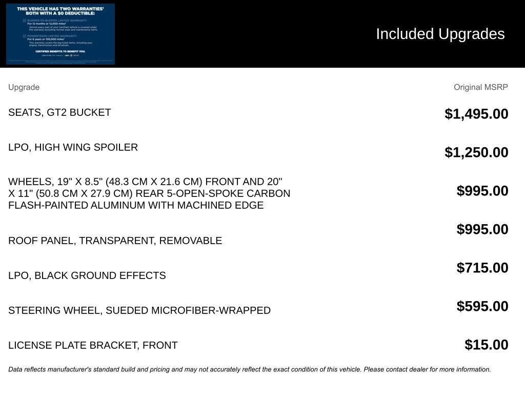 - Corvette standard suspension: