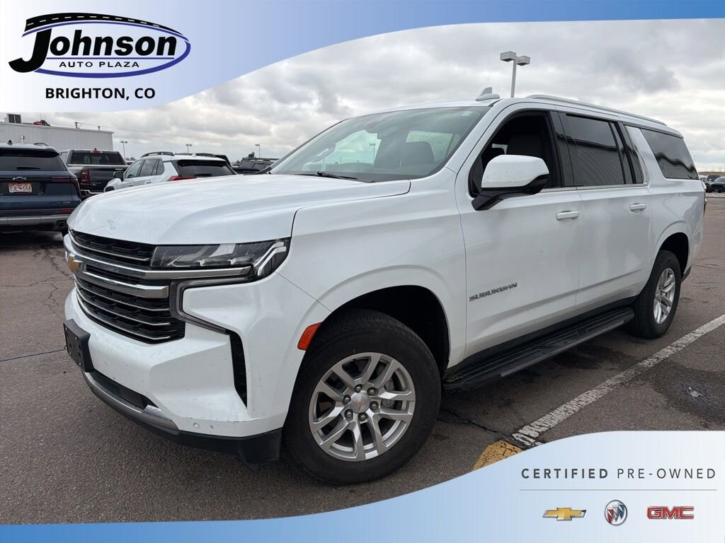 2022 Chevrolet Suburban LT Summit White 4WD EcoTec3 5.3L V8 10-Speed Automatic with OverdriveOdometer is 22187 miles below market average!Visit www.johnsonautoplaza.com for more information. Feel free to browse our inventory online, request more information about vehicles, set up a test drive or inquire about financing.We look forward to serving you! License Plate Front Mounting Package, Preferred Equipment Group 1LT (10-Way Power Driver & Passenger Seat Adjusters, 1st & 2nd Row Color-Keyed Carpeted Floor Mats, Auto-Dimming Inside Rear-View Mirror, Automatic Stop/Start, Bose 9-Speaker Stereo Audio System Feature, Bright Front & Rear Door Sill Plates, Color-Keyed Carpeting Floor Covering, Driver & Front Outboard Passenger Airbags, Enhanced Driver Information Center, Floor Console w/Storage Area, Front & Rear Park Assist, Hands-Free Rear Power Programmable Liftgate, Heated Driver & Front Passenger Seats, Infotainment Display, Leather-Wrapped Steering Wheel, LED Daytime Running Lamps, Memory Settings For Driver, Remote Start, SiriusXM Radio w/360L, Start/Stop System Disable Button, Universal Home Remote, and Wireless Charging), 3.23 Rear Axle Ratio, 3rd row seats: split-bench, 4-Wheel Disc Brakes, 9 Speakers, ABS brakes, Air Conditioning, Alloy wheels, AM/FM radio: SiriusXM with 360L, Apple CarPlay/Android Auto, Auto High-beam Headlights, Auto-dimming Rear-View mirror, Automatic temperature control, Brake assist, Bumpers: body-color, Compass, Delay-off headlights, Driver door bin, Driver vanity mirror, Dual front impact airbags, Dual front side impact airbags, Electronic Stability Control, Emergency communication system: OnStar and Chevrolet connected services capable, Four wheel independent suspension, Front anti-roll bar, Front Bucket Seats, Front Center Armrest, Front dual zone A/C, Front reading lights, Fully automatic headlights, Garage door transmitter, Heated door mirrors, Heated front seats, Illuminated entry, Leather steering wheel, Leather-Appointed Seating, Low tire pressure warning, Memory seat, Navigation System, Not Equipped w/Steering Column Lock, Occupant sensing airbag, Outside temperature display, Overhead airbag, Overhead console, Panic alarm, Passenger door bin, Passenger vanity mirror, Power door mirrors, Power driver seat, Power Liftgate, Power passenger seat, Power steering, Power windows, Premium audio system: Chevrolet Infotainment 3 Premium, Premium Smooth Ride Suspension, Radio: Chevrolet Infotainment 3 Premium System, Rain sensing wipers, Rear air conditioning, Rear anti-roll bar, Rear reading lights, Rear seat center armrest, Rear window defroster, Rear window wiper, Remote keyless entry, Roof rack: rails only, Security system, Speed control, Speed-sensing steering, Split folding rear seat, Spoiler, Steering wheel mounted audio controls, Tachometer, Telescoping steering wheel, Tilt steering wheel, Traction control, Trip computer, Variably intermittent wipers, Voltmeter, and Wheels: 18 x 8.5 Bright Silver Painted AluminuM.