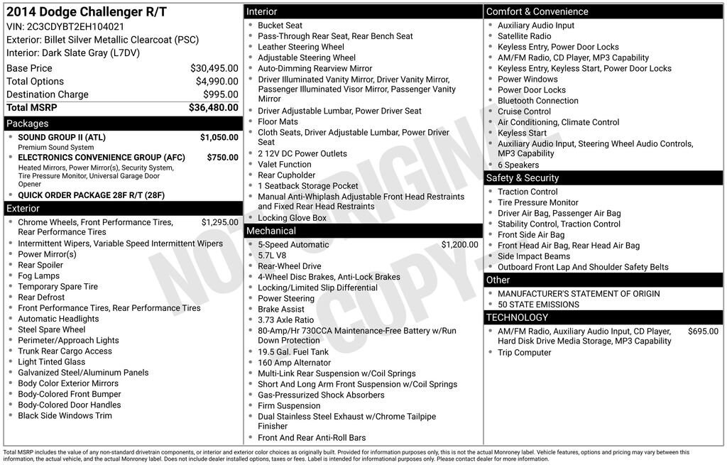 2014 Dodge Challenger R/T Billet Silver Metallic Clearcoat RWD HEMI 5.7L V8 Multi Displacement VVT 5-Speed Automatic