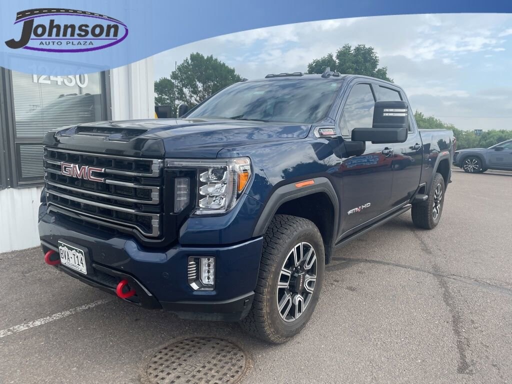 2022 GMC Sierra 2500HD AT4 Pacific Blue Metallic 4WD Duramax 6.6L V8 Turbodiesel 10-Speed Automatic10-Speed Automatic, 4WD, Jet Black With Kalahari Accents Leather.Odometer is 46195 miles below market average!Visit www.johnsonautoplaza.com for more information. Feel free to browse our inventory online, request more information about vehicles, set up a test drive or inquire about financing.We look forward to serving you! AT4 Preferred Package (Bed View Camera w/2 Trailer Camera Provisions, Bose Premium 7 Speaker Sound System, HD Surround Vision w/2 Trailer View Camera Provisions, LED Smoked Amber Roof Marker Lamps, Power Sliding Rear Window w/Defogger, Radio: AM/FM w/Prem GMC Infotainment System & Navi, Universal Home Remote, and Wireless Charging), AT4 Premium Plus Package (20 Machined Aluminum Wheels, Off-Road High Clearance Step (LPO), and Power Sunroof), Driver Alert Package I (Lane Change Alert w/Side Blind Zone Alert, Rear Cross Traffic Alert, and Ultrasonic Front & Rear Park Assist), Driver Alert Package II (Automatic Emergency Braking, Following Distance Indicator, Forward Collision Alert, IntelliBeam Automatic High Beam On/Off, Lane Departure Warning System, and Safety Alert Seat), Gooseneck/5th Wheel Package, Gooseneck/5th Wheel Prep Package, Preferred Equipment Group 4SB (12-Volt Rear Auxiliary Power Outlet, 120-Volt Bed Mounted Power Outlet, 120-Volt Instrument Panel Power Outlet, 2 USB Ports, 2 USB Ports (1st Row), 2-Speed Active Transfer Case, 2nd Row Dual USB Charge-Only Ports, 4.2 Diagonal Color Display Driver Info Center, Compass Located In Instrument Cluster, Deep-Tinted Glass, Electric Rear-Window Defogger, Electrical Lock Control Steering Column, Floor-Mounted Center Console, Front Prem Floor Liners w/Removable Carpet Insert, GMC Connected Access Capable, HD Rear Vision Camera, Heated & Ventilated Front Bucket Seats, Heated Driver & Front Outboard Passenger Seats, Integrated Trailer Brake Controller, Keyless Open & Start, LED Cargo Area Lighting, Manual Tilt-Wheel/Telescoping Steering Column, OnStar & GMC Connected Services Capable, Painted Black Surround Grille, Power Door Locks, Power Front Passenger Windows w/Express Up/Down, Power Rear Windows w/Express Down, Power Windows w/Driver Express Up/Down, Rear Prem Floor Liners w/Removable Carpet Insert, Rear Wheelhouse Liners, Red Recovery Hooks, Remote Vehicle Starter System, Spray-On Pickup Box Bed Liner w/AT4 Logo, Steering Wheel Audio Controls, Unauthorized Entry Theft-Deterrent System, Wi-Fi Hotspot Capable, and Wireless Phone Projection), Snow Plow Prep/Camper Package (220 Amps Alternator), Technology Package (8 Driver Information Center, Inside Rearview Auto-Dimming Rear Camera Mirror, and Multicolor 15 Diagonal Head-Up Display), X31 Off-Road Package (Hill Descent Control), 10-Speed Automatic, 4WD, Jet Black With Kalahari Accents Leather, 10-Way Power Driver Seat Adjuster w/Lumbar, 10-Way Power Passenger Seat Adjuster w/Lumbar, 18 Machined Aluminum Wheels, 4-Wheel Disc Brakes, 6 Speakers, 6-Speaker Audio System Feature, ABS brakes, Air Conditioning, Alloy wheels, AM/FM radio: SiriusXM with 360L, Apple CarPlay/Android Auto, Auto-dimming door mirrors, Auto-dimming Rear-View mirror, Automatic temperature control, Brake assist, Bumpers: body-color, Compass, Delay-off headlights, Driver door bin, Driver Memory, Driver vanity mirror, Dual front impact airbags, Dual front side impact airbags, Electronic Stability Control, Emergency communication system: OnStar and GMC Connected Services capable, Engine Block Heater, Exhaust Brake, Front anti-roll bar, Front Bucket Seats, Front Center Armrest, Front dual zone A/C, Front fog lights, Front License Plate Kit, Front reading lights, Front wheel independent suspension, Fully automatic headlights, Heated 2nd Row Outboard Seats, Heated door mirrors, Heated front seats, Heated steering wheel, Heavy-Duty 80 Amp Battery, High Idle Switch, Hitch Guidance w/Hitch View, Illuminated en