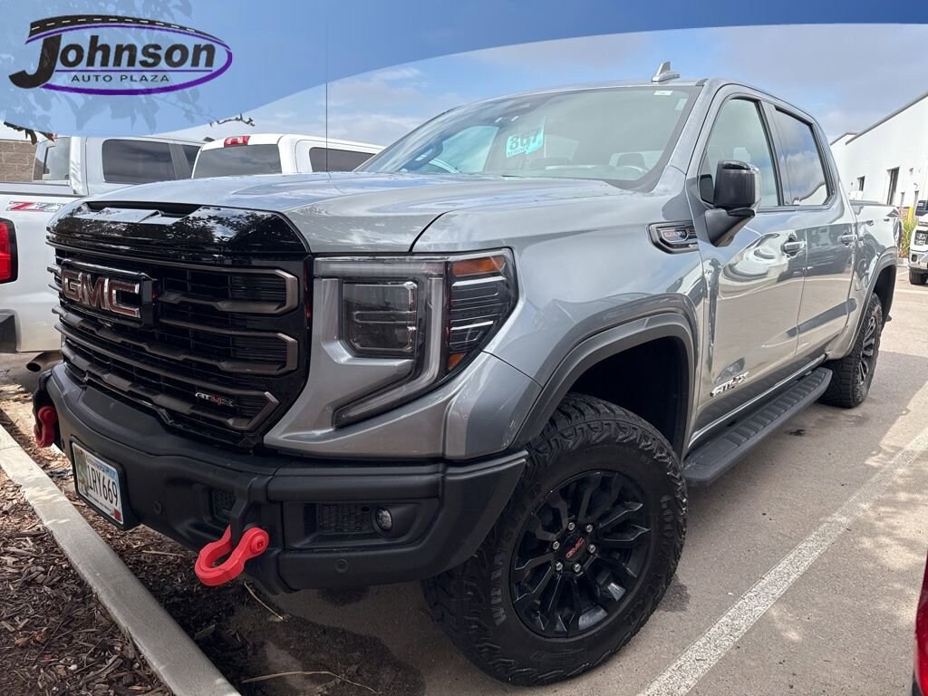 2023 GMC Sierra 1500 AT4X Sterling Metallic 4WD EcoTec3 6.2L V8 10-Speed AutomaticCertified. GMC Certified Pre-Owned Details:* Vehicle History* Roadside Assistance* Powertrain Limited Warranty: 72 Month/100,000 Mile (whichever comes first) from original in-service date* Transferable Warranty* Warranty Deductible: $0* Limited Warranty: 12 Month/12,000 Mile (whichever comes first) from certified purchase date* 172 Point Inspection* 24 months/24,000 miles (whichever comes first) Certified Pre-Owned Scheduled Maintenance Plan and 3 days/150 miles (whichever comes first) Vehicle Exchange Program. SiriusXM 3-month trial subscription10-Speed Automatic, 4WD, Obsidian Rush Leather.Odometer is 4052 miles below market average!Visit www.johnsonautoplaza.com for more information. Feel free to browse our inventory online, request more information about vehicles, set up a test drive or inquire about financing.We look forward to serving you! Preferred Equipment Group 4SG (120-Volt Bed Mounted Power Outlet, 120-Volt Instrument Panel Power Outlet, 2 Charge/Data USB Ports Inside Center Console, 2 Type-C Charge-Only Rear USB Ports, 2 USB Ports, Bed View Camera, Bose Premium Series w/12-Speaker System, Color-Keyed Carpeting Floor Covering, Compass, Deep-Tinted Glass, Driver-Selectable Full-Locking Front Differential, Driver-Selectable Full-Locking Rear Differential, Electric Rear-Window Defogger, Electrical Steering Column Lock, Floor-Mounted Center Console, Front Prem Floor Liners w/Removable Carpet Insert, Front Rainsensing Wipers, Gloss Black Header w/Drk Nickel Grille Insert Bars, GMC Connected Access Capable, HD Surround Vision, Heated 2nd Row Outboard Seats, Heated Driver & Front Outboard Passenger Seating, Heavy-Duty Air Filter, Hill Descent Control, Hitch Guidance w/Hitch View, In-Vehicle Trailering App, Integrated Trailer Brake Controller, Keyless Open & Start, LED Cargo Area Lighting, Multicolor 15 Diagonal Head-Up Display, MultiPro Audio System by Kicker (LPO), OnStar & GMC Connected Services Capable, Perimeter Lighting, Power Door Locks, Power Front Passenger Windows w/Express Up/Down, Power Front Windows w/Driver Express Up/Down, Power Rake & Telescoping Steering Column, Power Rear Windows w/Express Down, Power Sliding Rear Window w/Rear Defogger, Power Sunroof, Push Button Start, Rear Cross Traffic Braking, Rear Pedestrian Detection, Rear Prem Floor Liners w/Removable Carpet Insert, Rear Wheelhouse Liners, Remote Vehicle Starter System, SiriusXM w/360L, Spray-On Pickup Bed Liner w/AT4X Logo, Steering Wheel Audio Controls, Theft Deterrent System (Unauthorized Entry), Trailer Camera Provisions, Trailer Side Blind Zone Alert, Trailer Tire Pressure Monitor System, Ultrasonic Front & Rear Park Assist, Universal Home Remote, Ventilated Driver & Front Passenger Seats, Wi-Fi Hotspot Capable, Wireless Charging, and Wireless Phone Projection), Trailering Package (Hitch Guidance), GMC Certified Pre-Owned Certified, 10-Speed Automatic, 4WD, Obsidian Rush Leather, 12 Speakers, 16-Way Power Driver Seat Adjuster w/Lumbar, 16-Way Power Passenger Seat Adjuster w/Lumbar, 3.23 Rear Axle Ratio, 4-Wheel Disc Brakes, ABS brakes, Air Conditioning, Alloy wheels, AM/FM radio, Apple CarPlay/Android Auto, Auto High-beam Headlights, Auto-dimming door mirrors, Auto-dimming Rear-View mirror, Automatic Emergency Braking, Automatic temperature control, Brake assist, Buckle to Drive, Delay-off headlights, Driver door bin, Driver Memory, Driver vanity mirror, Dual front impact airbags, Dual front side impact airbags, Electronic Stability Control, Emergency communication system: OnStar and GMC connected services capable, Following Distance Indicator, Forward Collision Alert, Front anti-roll bar, Front Bucket Seats, Front Center Armrest, Front dual zone A/C, Front fog lights, Front License Plate Kit, Front Pedestrian Braking, Front reading lights, Front wheel independen