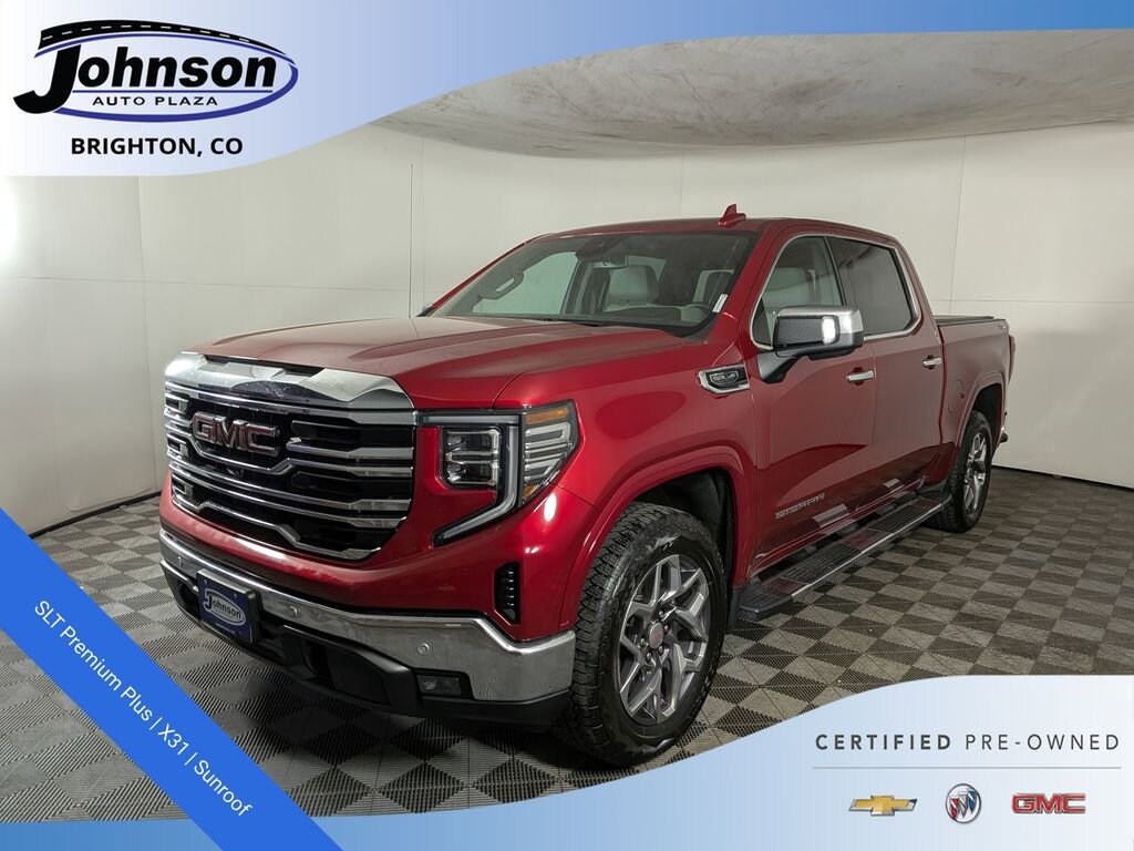 2024 GMC Sierra 1500 SLT Volcanic Red Tintcoat 4WD EcoTec3 5.3L V8 10-Speed AutomaticCertified. GMC Certified Pre-Owned Details:* Transferable Warranty* 172 Point Inspection* Limited Warranty: 12 Month/12,000 Mile (whichever comes first) from certified purchase date* Powertrain Limited Warranty: 72 Month/100,000 Mile (whichever comes first) from original in-service date* 24 months/24,000 miles (whichever comes first) Certified Pre-Owned Scheduled Maintenance Plan and 3 days/150 miles (whichever comes first) Vehicle Exchange Program. SiriusXM 3-month trial subscription* Roadside Assistance* Warranty Deductible: $0* Vehicle History10-Speed Automatic, 4WD, Dark Walnut/Slate Leather.Odometer is 17517 miles below market average!Visit www.johnsonautoplaza.com for more information. Feel free to browse our inventory online, request more information about vehicles, set up a test drive or inquire about financing.We look forward to serving you! High Capacity Suspension Package, Preferred Equipment Group 4SA (120-Volt Bed Mounted Power Outlet, 120-Volt Interior Power Outlet, 170 Amp Alternator, 2 Charge/Data USB Ports, 2 Type-C Charge-Only Rear USB Ports, 6-Speaker Audio System Feature, Auto-Locking Rear Differential, Auxiliary External Transmission Oil Cooler, Chrome Header & Chrome Grille Insert Bars, Color-Keyed Carpeting Floor Covering, Deep-Tinted Glass, Electric Rear-Window Defogger, Front Frame-Mounted Black Recovery Hooks, Front Rain-Sensing Wipers, GMC Connected Access Capable, HD Rear Vision Camera, Keyless Open & Start, LED Cargo Area Lighting, Manual Tilt-Wheel & Telescoping Steering Column, OnStar & GMC Connected Services Capable, Perimeter Lighting, Power Door Locks, Power Front Passenger Windows w/Express Up/Down, Power Front Windows w/Driver Express Up/Down, Power Rear Windows w/Express Down, Push Button Start, Rear Wheelhouse Liners, Remote Vehicle Starter System, SiriusXM w/360L, Steering Wheel Audio Controls, Theft Deterrent System (Unauthorized Entry), and Wi-Fi Hotspot Capable), ProGrade Trailering System (Hitch View, In-Vehicle Trailering System App, and Integrated Trailer Brake Controller), Sierra Safety Plus Package (HD Surround Vision, Rear Cross Traffic Braking, Rear Pedestrian Detection, Safety Alert Seat, Trailer Camera Provisions, Trailer Side Blind Zone Alert, and Ultrasonic Front & Rear Park Assist), SLT Convenience Package (2 Charge/Data USB Ports Inside Center Console, Electronic Precision Shift, Floor-Mounted Center Console, Front Bucket Seats, Power Rake & Telescoping Steering Column, Premium Bose 7-Speaker Sound System, Ventilated Driver & Front Passenger Seats, and Wireless Charging), SLT Preferred Package (Adaptive Cruise Control, Heated 2nd Row Outboard Seats, Power Sliding Rear Window w/Rear Defogger, and Universal Home Remote), SLT Premium Plus Package (Chrome Wheel To Wheel Assist Steps and Spray-On Pickup Bedliner w/GMC Logo), Standard Suspension Package, Trailering Package (Hitch Guidance), X31 Off-Road & Protection Package (All-Weather Floor Liner (LPO)), X31 Off-Road Package (Dual Exhaust System, Heavy-Duty Air Filter, Hill Descent Control, Off-Road Suspension, and X31 Hard Badge), GMC Certified Pre-Owned Certified, 10-Speed Automatic, 4WD, Dark Walnut/Slate Leather, 10-Way Power Driver Seat Adjuster w/Lumbar, 10-Way Power Passenger Seat Adjuster w/Lumbar, 20 Polished Aluminum Wheels, 3.23 Rear Axle Ratio, 4-Wheel Disc Brakes, 6 Speakers, ABS brakes, Air Conditioning, Alloy wheels, AM/FM radio: SiriusXM with 360L, Apple CarPlay/Android Auto, Auto High-beam Headlights, Auto-dimming door mirrors, Auto-dimming Rear-View mirror, Automatic Emergency Braking, Automatic temperature control, Body Color Wheel Arch Moldings (LPO), Brake assist, Buckle to Drive, Bumpers: chrome, Compass, Delay-off headlights, Driver door bin, Driver Memory, Driver vanity mirror, Dual front impact airbags, Dual front side