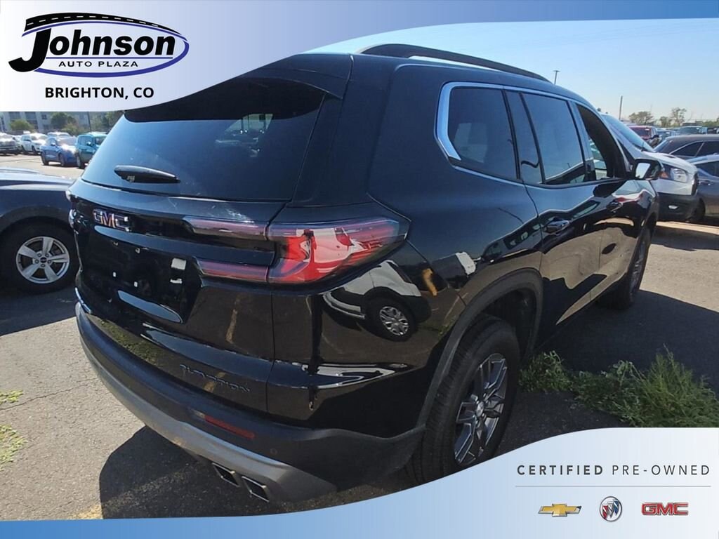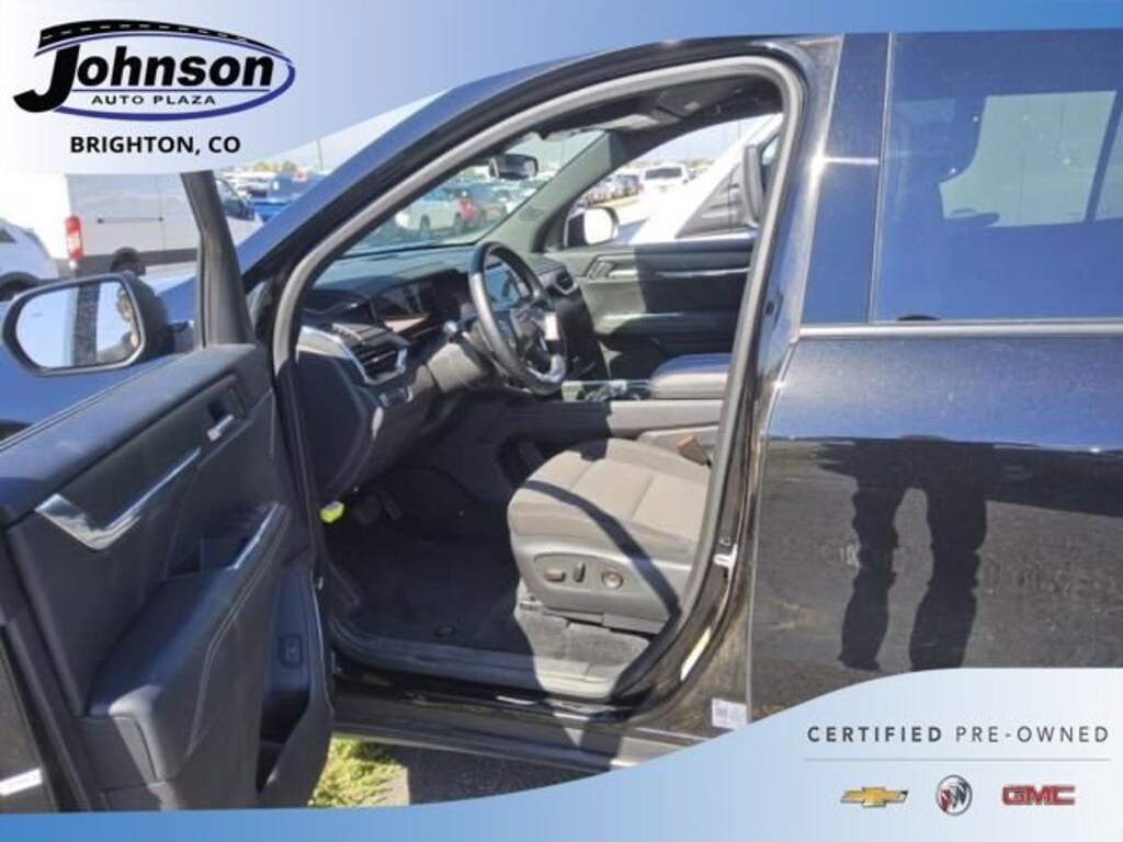 2025 GMC Acadia Elevation Ebony Twilight Metallic AWD 2.5L DOHC 8-Speed AutomaticAWD, After Dark Cloth.Visit www.johnsonautoplaza.com for more information. Feel free to browse our inventory online, request more information about vehicles, set up a test drive or inquire about financing.We look forward to serving you! Preferred Equipment Group 4SD, AWD, After Dark Cloth, 12 Speakers, 18 x 7.5 Aluminum Wheels, 2-Way Driver Power Lumbar Seat Adjuster, 3.49 Final Drive Axle Ratio, 3rd row seats: split-bench, 4-Way Manual Front Passenger Seat Adjuster, 4-Wheel Disc Brakes, 8-Passenger Seating (2-3-3 Seating Configuration), 8-Way Power Driver Seat Adjuster, ABS brakes, Air Conditioning, Alloy wheels, AM/FM radio: SiriusXM with 360L, Apple CarPlay/Android Auto, Auto High-beam Headlights, Auto-dimming Rear-View mirror, Automatic temperature control, Bodyside moldings, Bose Premium 12-Speaker System w/Sub-Woofer, Brake assist, Bumpers: body-color, Cloth Seat Trim, Compass, Delay-off headlights, Driver door bin, Driver vanity mirror, Dual front impact airbags, Dual front side impact airbags, Electronic Stability Control, Emergency communication system: OnStar Services capable, Exterior Parking Camera Rear, Four wheel independent suspension, Front anti-roll bar, Front Bucket Seats, Front Center Armrest, Front dual zone A/C, Front fog lights, Front License Plate Bracket, Front reading lights, Fully automatic headlights, Heated door mirrors, Heated Driver & Front Passenger Seats, Heated front seats, Heated steering wheel, Illuminated entry, Leather steering wheel, Low tire pressure warning, Navigation System, Occupant sensing airbag, Outside temperature display, Overhead airbag, Overhead console, Panic alarm, Passenger door bin, Passenger vanity mirror, Power door mirrors, Power driver seat, Power Liftgate, Power steering, Power windows, Radio data system, Radio: 15 Premium GMC Infotainment System, Rear air conditioning, Rear anti-roll bar, Rear reading lights, Rear seat center armrest, Rear side impact airbag, Rear window defroster, Rear window wiper, Remote keyless entry, Security system, SiriusXM w/360L, Speed control, Speed-sensing steering, Split folding rear seat, Spoiler, Sport steering wheel, Steering wheel mounted audio controls, Tachometer, Telescoping steering wheel, Tilt steering wheel, Traction control, Trip computer, Turn signal indicator mirrors, Variably intermittent wipers, and VoltmeteR.
