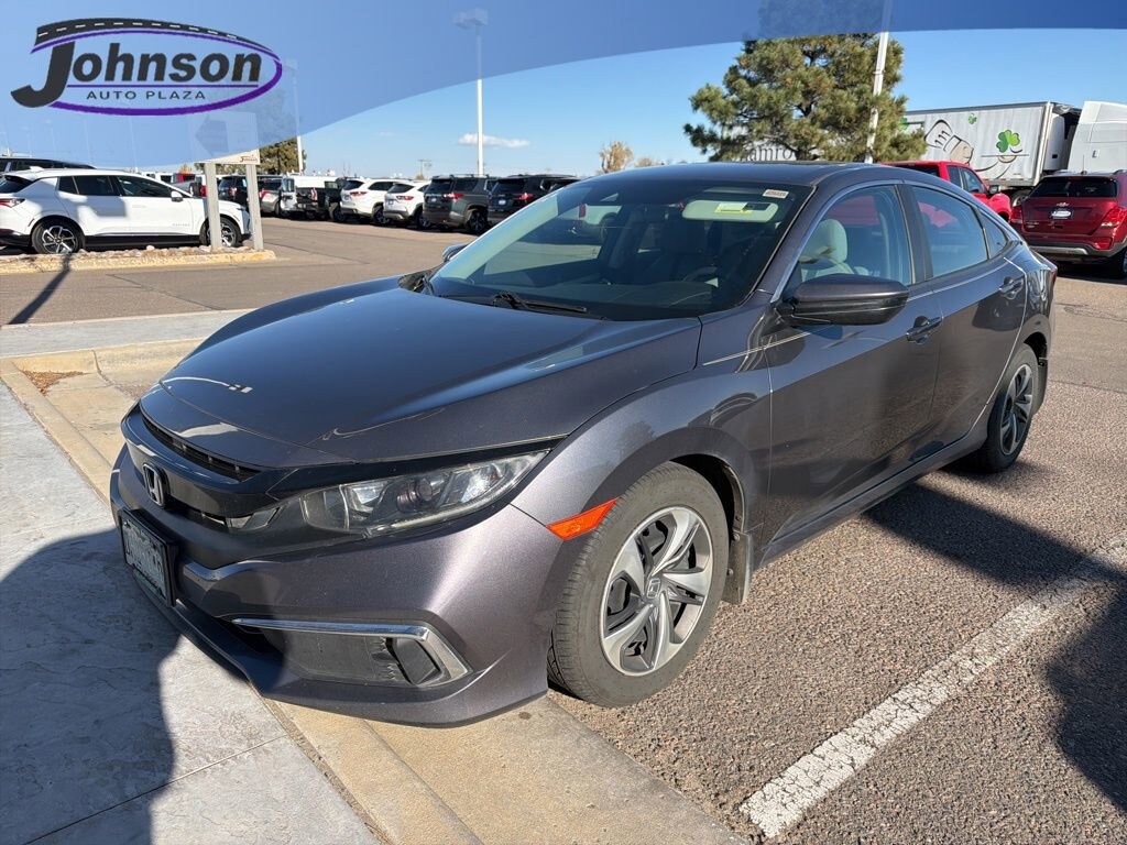 2020 Honda Civic LX Gray FWD 2.0L I4 DOHC 16V i-VTEC CVTGray Cloth.30/38 City/Highway MPGVisit www.johnsonautoplaza.com for more information. Feel free to browse our inventory online, request more information about vehicles, set up a test drive or inquire about financing.We look forward to serving you! Gray Cloth, 16 Wheels w/Full Covers, 4 Speakers, 4-Wheel Disc Brakes, ABS brakes, Adaptive Cruise Control: Adaptive Cruise Control (ACC) with Low-Speed Follow, Air Conditioning, AM/FM radio, Auto High-beam Headlights, Automatic temperature control, Brake assist, Bumpers: body-color, Cloth Seat Trim, Delay-off headlights, Driver door bin, Driver vanity mirror, Dual front impact airbags, Dual front side impact airbags, Electronic Stability Control, Exterior Parking Camera Rear, Forward collision: Collision Mitigation Braking System (CMBS) + FCW mitigation, Four wheel independent suspension, Front anti-roll bar, Front Bucket Seats, Front Center Armrest, Front reading lights, Fully automatic headlights, Illuminated entry, Lane departure: Lane Keeping Assist System (LKAS) active, Low tire pressure warning, Occupant sensing airbag, Outside temperature display, Overhead airbag, Panic alarm, Passenger door bin, Passenger vanity mirror, Power door mirrors, Power steering, Power windows, Radio data system, Radio: 160-Watt AM/FM Audio System, Rear anti-roll bar, Rear window defroster, Remote keyless entry, Security system, Speed control, Speed-sensing steering, Steering wheel mounted audio controls, Tachometer, Telescoping steering wheel, Tilt steering wheel, Traction control, and Trip computeR.
