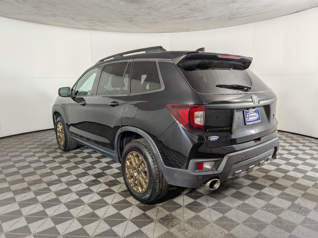 2023 Honda Passport TrailSport Crystal Black Pearl AWD 3.5L V6 24V SOHC i-VTEC 9-Speed AutomaticVisit www.johnsonautoplaza.com for more information. Feel free to browse our inventory online, request more information about vehicles, set up a test drive or inquire about financing.We look forward to serving you! 4-Wheel Disc Brakes, 4.334 Axle Ratio, 7 Speakers, A/V remote: CabinControl, ABS brakes, Air Conditioning, Alloy wheels, AM/FM radio: SiriusXM, Apple CarPlay/Android Auto, Auto High-beam Headlights, Auto-dimming Rear-View mirror, Automatic temperature control, Blind Spot Information (BSI) System warning, Brake assist, Bumpers: body-color, Compass, Delay-off headlights, Driver door bin, Driver vanity mirror, Driver's Seat Mounted Armrest, Dual front impact airbags, Dual front side impact airbags, Electronic Stability Control, Emergency communication system: HondaLink Assist, Exterior Parking Camera Rear, Four wheel independent suspension, Front anti-roll bar, Front Bucket Seats, Front Center Armrest, Front dual zone A/C, Front fog lights, Front reading lights, Fully automatic headlights, Garage door transmitter: HomeLink, Heated door mirrors, Heated Front Bucket Seats, Heated front seats, Illuminated entry, Lane departure: Lane Keeping Assist System (LKAS) active, Leather-Trimmed Seats, Low tire pressure warning, Navigation system: Honda Satellite-Linked Navigation System, Occupant sensing airbag, Outside temperature display, Overhead airbag, Overhead console, Panic alarm, Passenger door bin, Passenger seat mounted armrest, Passenger vanity mirror, Power door mirrors, Power driver seat, Power Liftgate, Power moonroof, Power passenger seat, Power steering, Power windows, Radio data system, Radio: 215-Watt Audio System w/7 Speakers, Rear air conditioning, Rear anti-roll bar, Rear reading lights, Rear seat center armrest, Rear window defroster, Rear window wiper, Remote keyless entry, Roof rack: rails only, Security system, Speed control, Speed-sensing steering, Split folding rear seat, Spoiler, Steering wheel mounted audio controls, Tachometer, Telescoping steering wheel, Tilt steering wheel, Traction control, Trip computer, Turn signal indicator mirrors, Variably intermittent wipers, and Wheels: 18 Machine-Finish AlloY.