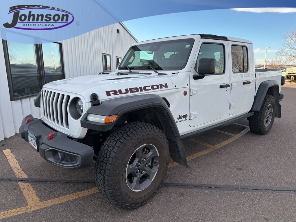 2020 Jeep Gladiator Rubicon Bright White Clearcoat 4WD 3.6L V6 24V VVT 8-Speed AutomaticVisit www.johnsonautoplaza.com for more information. Feel free to browse our inventory online, request more information about vehicles, set up a test drive or inquire about financing.We look forward to serving you! 8.4 Radio & Premium Audio Group (1-Year SiriusXM Guardian Trial, 5-Year SiriusXM Traffic Service, 5-Year SiriusXM Travel Link Service, Alpine Premium Audio System, Auto-Dimming Rear-View Mirror, Emergency/Assistance Call, For Details, Visit DriveUconnect.com, HD Radio, Radio: Uconnect 4C Nav w/8.4 Display, SiriusXM Traffic Plus, and SiriusXM Travel Link), Advanced Safety Group (Advanced Brake Assist and Full Speed Forward Collision Warning Plus), Cold Weather Group (Heated Front Seats and Heated Steering Wheel), LED Lighting Group (Daytime Running Lamps LED Accents, Front LED Fog Lamps, LED Park Turn Lamps, LED Reflector Headlamps, and LED Taillamps), Quick Order Package 24R, Safety Group (Blind Spot & Cross Path Detection and ParkSense Rear Park Assist System), Trailer Tow Package (240 Amp Alternator, Class IV Hitch Receiver, Heavy-Duty Engine Cooling, and Trailer Hitch Zoom), 4-Wheel Disc Brakes, 4.10 Rear Axle Ratio, 8 Speakers, 97 mph Maximum Speed Calibration, ABS brakes, Air Conditioning, All-Weather Slush Mats, Alloy wheels, AM/FM radio: SiriusXM, Apple CarPlay/Android Auto, Automatic temperature control, Body Color 3-Piece Hard Top, Brake assist, Compass, Delay-off headlights, Driver door bin, Driver vanity mirror, Dual front impact airbags, Dual front side impact airbags, Electronic Stability Control, Freedom Panel Storage Bag, Front anti-roll bar, Front Bucket Seats, Front Center Armrest w/Storage, Front dual zone A/C, Front fog lights, Front reading lights, Fully automatic headlights, Garage door transmitter, Hardtop Headliner, Heated door mirrors, Illuminated entry, Integrated roll-over protection, Leather steering wheel, Low tire pressure warning, No Soft Top, Occupant sensing airbag, Outside temperature display, Panic alarm, ParkView Rear Back-Up Camera, Passenger door bin, Passenger vanity mirror, Performance Suspension, Power door mirrors, Power steering, Power windows, Premium Cloth Low-Back Bucket Seats, Radio data system, Radio: Uconnect 4 w/7 Display, Rear anti-roll bar, Rear reading lights, Rear Sliding Window, Rear Window Defroster, Remote keyless entry, Remote Start System, Security system, Speed control, Split folding rear seat, Steering wheel mounted audio controls, Tachometer, Telescoping steering wheel, Tilt steering wheel, Traction control, Trip computer, Variably intermittent wipers, Voltmeter, and Wheels: 17 x 7.5 Granite Crystal AluminuM.Awards:* NACTOY 2020 North American Truck of the Year * 2020 KBB.com 10 Favorite New-for-2020 Cars