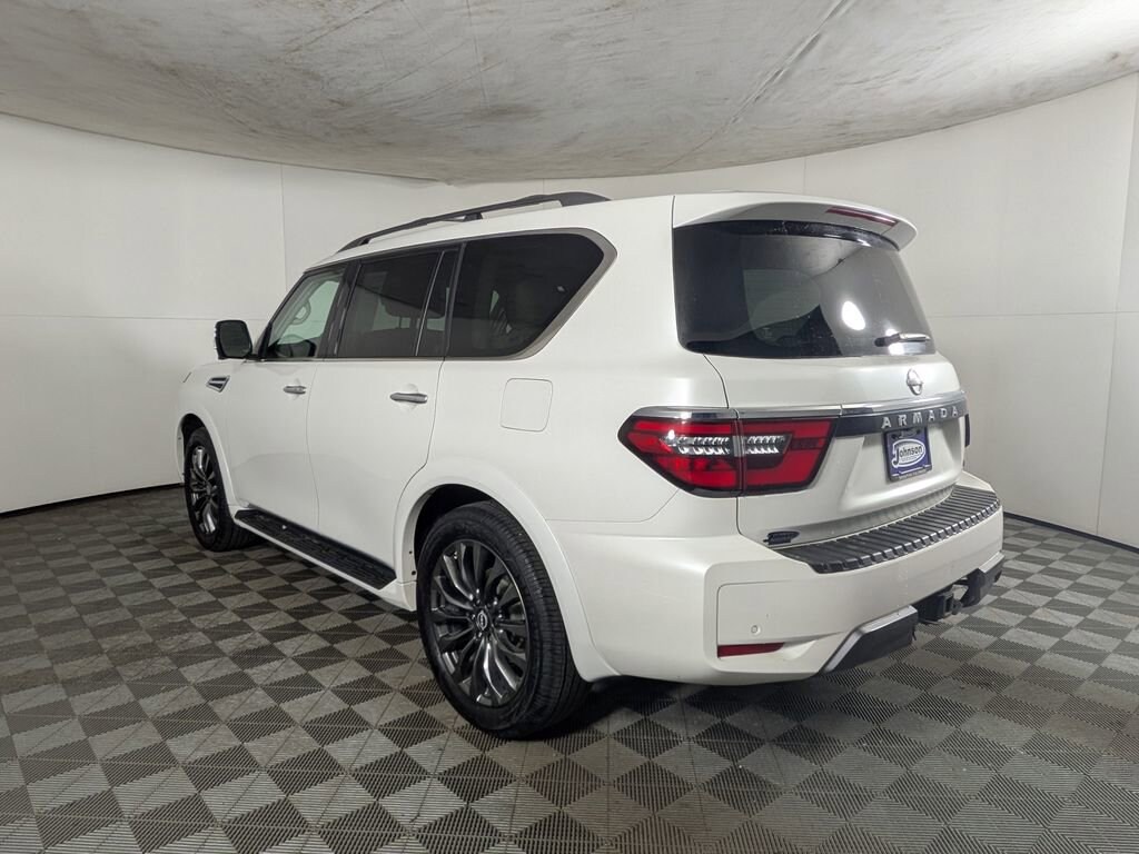 We look forward to serving you! Captain's Chairs Package (2nd Row Captain's Chairs and 2nd Row Center Console w/Padded Armrest), Cargo Package, 4WD, 13 Speakers, 2.94 Axle Ratio, 3rd Row Carpeted Floor Mats - Captain Seat, 3rd row seats: split-bench, 4-Wheel Disc Brakes, A/V remote, ABS brakes, Air Conditioning, Alloy wheels, AM/FM radio: SiriusXM, Anti-whiplash front head restraints, Auto High-beam Headlights, Auto tilt-away steering wheel, Auto-dimming door mirrors, Auto-dimming Rear-View mirror, Auto-leveling suspension, Automatic temperature control, Bose 13-Speaker Premium Audio System, Brake assist, Bumpers: body-color, Climate-Controlled Front Bucket Seats, Cross Bars, Delay-off headlights, Driver door bin, Driver vanity mirror, Dual front impact airbags, Dual front side impact airbags, Electronic Stability Control, Emergency communication system: NissanConnect Services, Exterior Parking Camera Rear, Four wheel independent suspension, Front anti-roll bar, Front Bucket Seats, Front Center Armrest, Front dual zone A/C, Front fog lights, Front reading lights, Fully automatic headlights, Garage door transmitter: HomeLink, Headphones, Heated door mirrors, Heated front seats, Heated rear seats, Heated steering wheel, Illuminated entry, Illuminated Kick Plates, Illuminated Scuff Plate, Knee airbag, Leather Shift Knob, Low tire pressure warning, Memory seat, Navigation System, NissanConnect featuring Apple CarPlay and Android Auto, Occupant sensing airbag, Outside temperature display, Overhead airbag, Overhead console, Panic alarm, Passenger door bin, Passenger vanity mirror, Power door mirrors, Power driver seat, Power Liftgate, Power moonroof, Power passenger seat, Power steering, Power windows, Premium audio system: Bose, Quilted Leather Seat Trim, Radio: NissanConnect w/SiriusXM, Rain sensing wipers, Rear air conditioning, Rear anti-roll bar, Rear reading lights, Rear seat center armrest, Rear window defroster, Rear window wiper, Rear-Seat Entertainment, Reclining 3rd row seat, Remote keyless entry, Security system, Speed control, Speed-sensing steering, Speed-Sensitive Wipers, Split folding rear seat, Spoiler, Steering wheel memory, Steering wheel mounted audio controls, Tachometer, Telescoping steering wheel, Tilt steering wheel, Traction control, Trip computer, Turn signal indicator mirrors, Variably intermittent wipers, Ventilated front seats, Voltmeter, and Wheels: 22 x 8J Machine-Faced w/Tinted Clear CoaT.