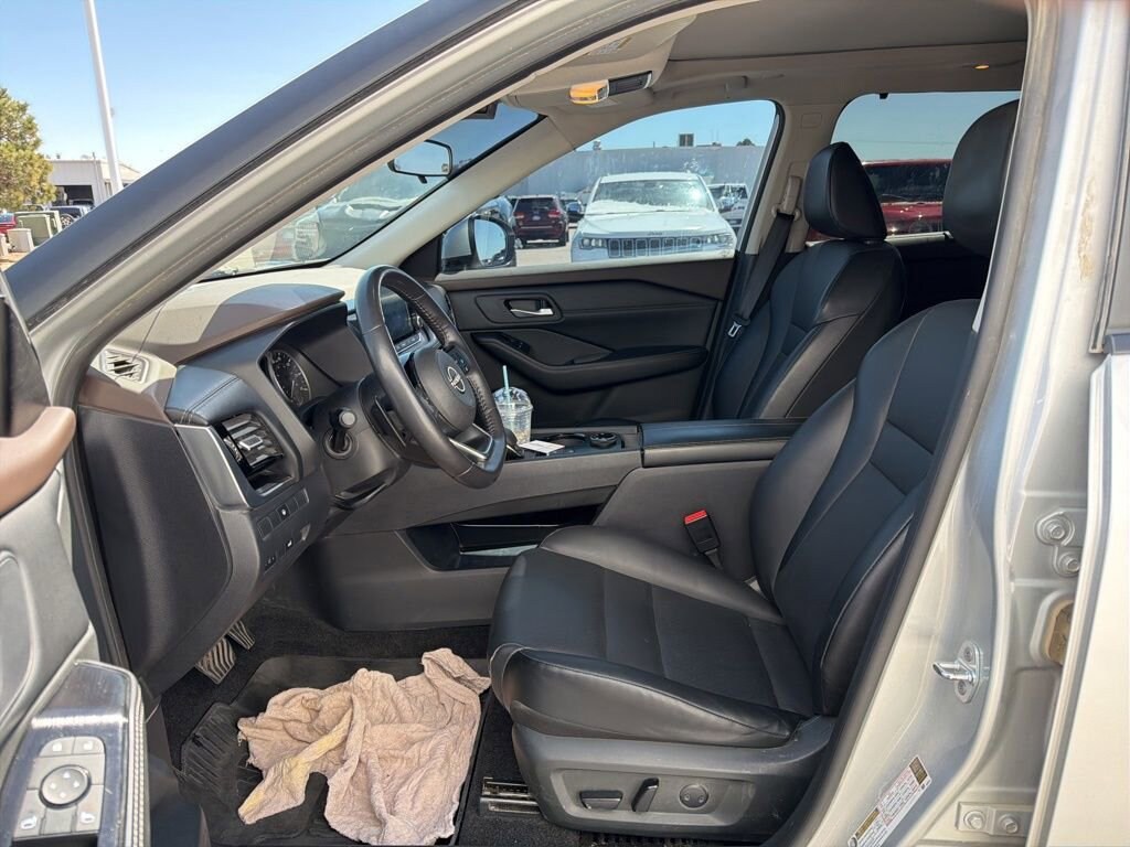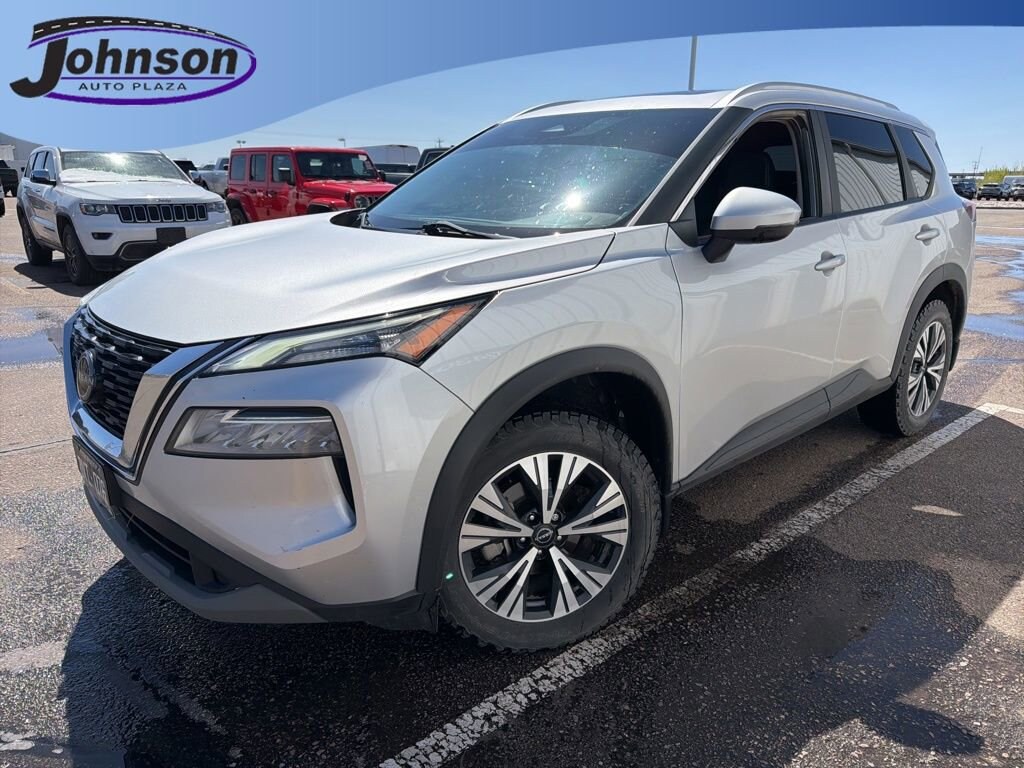 2023 Nissan Rogue SV Brilliant Silver Metallic AWD 1.5L I3 Turbocharged DOHC 12V LEV3-ULEV50 201hp CVT with XtronicAWD.28/35 City/Highway MPGVisit www.johnsonautoplaza.com for more information. Feel free to browse our inventory online, request more information about vehicles, set up a test drive or inquire about financing.We look forward to serving you! SV Premium Package (DISC) (PRIMATEX Leatherette Seat Trim (DISC)), AWD, 18 Aluminum Alloy Wheels, 4-Wheel Disc Brakes, 5.604 Axle Ratio, 6 Speakers, ABS brakes, Air Conditioning, Alloy wheels, AM/FM Radio, AM/FM radio: SiriusXM, Auto High-beam Headlights, Automatic temperature control, Black Splash Guards (Set of 4), Brake assist, Bumpers: body-color, Chrome Rear Bumper Protector, Cloth Seat Trim, Delay-off headlights, Driver door bin, Driver vanity mirror, Dual front impact airbags, Dual front side impact airbags, Electronic Stability Control, Emergency communication system: NissanConnect Services, First Aid Kit, Floor Mats w/1-Piece Cargo Area Protector, Four wheel independent suspension, Front anti-roll bar, Front Bucket Seats, Front Center Armrest, Front dual zone A/C, Front reading lights, Fully automatic headlights, Heated door mirrors, Illuminated entry, Knee airbag, Low tire pressure warning, NissanConnect featuring Apple CarPlay and Android Auto, Occupant sensing airbag, Outside temperature display, Overhead airbag, Overhead console, Panic alarm, Passenger door bin, Passenger vanity mirror, Power door mirrors, Power driver seat, Power steering, Power windows, Radio data system, Rear anti-roll bar, Rear Parking Sensors, Rear seat center armrest, Rear side impact airbag, Rear window defroster, Rear window wiper, Remote keyless entry, Security system, Speed control, Speed-Sensitive Wipers, Split folding rear seat, Spoiler, Steering wheel mounted audio controls, Tachometer, Telescoping steering wheel, Tilt steering wheel, Traction control, Trip computer, Turn signal indicator mirrors, and Variably intermittent wiperS.