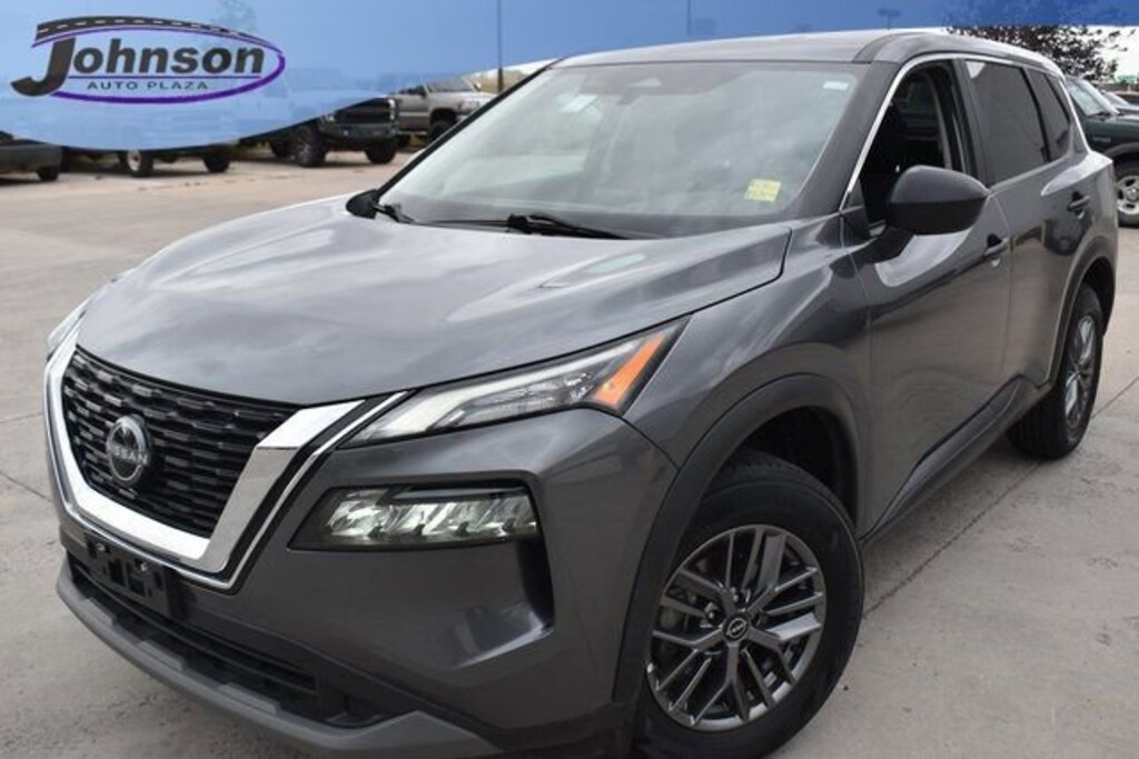 2023 Nissan Rogue S Gun Metallic AWD 1.5L I3 Turbocharged DOHC 12V LEV3-ULEV50 201hp CVT with XtronicAWD.28/35 City/Highway MPGVisit www.johnsonautoplaza.com for more information. Feel free to browse our inventory online, request more information about vehicles, set up a test drive or inquire about financing.We look forward to serving you! AWD, 17 Aluminum Alloy Wheels, 4 Speakers, 4-Wheel Disc Brakes, 5.604 Axle Ratio, ABS brakes, Air Conditioning, Alloy wheels, AM/FM Radio, AM/FM radio: SiriusXM, Auto High-beam Headlights, Blind Spot Warning, Brake assist, Bumpers: body-color, Cloth Seat Trim, Delay-off headlights, Driver door bin, Driver vanity mirror, Dual front impact airbags, Dual front side impact airbags, Electronic Stability Control, Four wheel independent suspension, Front anti-roll bar, Front Bucket Seats, Front Center Armrest, Front reading lights, Fully automatic headlights, Illuminated entry, Knee airbag, Low tire pressure warning, NissanConnect featuring Apple CarPlay and Android Auto, Occupant sensing airbag, Outside temperature display, Overhead airbag, Overhead console, Panic alarm, Passenger door bin, Passenger vanity mirror, Power door mirrors, Power steering, Power windows, Radio data system, Rear anti-roll bar, Rear Parking Sensors, Rear seat center armrest, Rear side impact airbag, Rear window defroster, Rear window wiper, Remote keyless entry, Speed control, Speed-Sensitive Wipers, Split folding rear seat, Spoiler, Steering wheel mounted audio controls, Tachometer, Telescoping steering wheel, Tilt steering wheel, Traction control, Trip computer, and Variably intermittent wiperS.