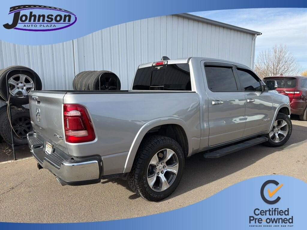 2021 Ram 1500 Laramie Billet Silver Metallic Clearcoat 4WD HEMI 5.7L V8 Multi Displacement VVT 8-Speed AutomaticCertified. FCA US LLC Certified Pre-Owned Details:* Vehicles Up to 75,000 Miles and/or 5 Model Years. 24-Hour Towing & Roadside Assistance, Car Rental Allowance, CARFAX® Vehicle History ReportTM and an Introductory 3-month Subscription to SiriusXM® Satellite Radio & Certified Warranty Upgrades* Transferable Warranty* 125 Point Inspection* Roadside Assistance* Powertrain Limited Warranty: 84 Month/100,000 Mile (whichever comes first) from original in-service date* Limited Warranty: 3 Month/3,000 Mile (whichever comes first) after new car warranty expires or from certified purchase date* Warranty Deductible: $100* Vehicle HistoryOdometer is 28374 miles below market average!Visit www.johnsonautoplaza.com for more information. Feel free to browse our inventory online, request more information about vehicles, set up a test drive or inquire about financing.We look forward to serving you! Quick Order Package 25H Laramie, FCA US LLC Certified Pre-Owned Certified, #1 Seat Foam Cushion, 10 Speakers, 3 Rear Seat Head Restraints, 3.21 Rear Axle Ratio, 4 Way Front Headrests, 4-Wheel Disc Brakes, 48V Belt Starter Generator, 8.4 Touchscreen Display, ABS brakes, Adjustable pedals, Air Conditioning, Alloy wheels, AM/FM radio: SiriusXM, Apple CarPlay, Apple CarPlay/Android Auto, Audio memory, Auto-dimming door mirrors, Auto-dimming Rear-View mirror, Automatic temperature control, Brake assist, Bumpers: chrome, Chrome Exterior Mirrors, Compass, Delay-off headlights, Driver door bin, Driver Seat Memory, Driver vanity mirror, Dual front impact airbags, Dual front side impact airbags, Electronic Stability Control, For More Info, Call 800-643-2112, Front anti-roll bar, Front Center Armrest w/Storage, Front dual zone A/C, Front fog lights, Front License Plate Bracket, Front reading lights, Front Seat Back Map Pockets, Front wheel independent suspension, Fully automatic headlights, Garage door transmitter, Google Android Auto, GPS Antenna Input, Heated door mirrors, Heated Front Seats, Heated front seats, Heated Steering Wheel, Heated steering wheel, Illuminated entry, Integrated Center Stack Radio, Integrated Voice Command w/Bluetooth, Leather steering wheel, Leather Trim 40/20/40 Bench Seat, Low tire pressure warning, Manufacturer's Statement of Origin, Memory seat, MOPAR Front & Rear Rubber Floor Mats, Occupant sensing airbag, Outside temperature display, Overhead airbag, Overhead console, Panic alarm, ParkView Rear Back-Up Camera, Passenger door bin, Passenger vanity mirror, Pedal memory, Power 4-Way Driver Lumbar Adjust, Power 4-Way Passenger Lumbar Adjust, Power 8-Way Driver & Passenger Seats, Power door mirrors, Power driver seat, Power passenger seat, Power steering, Power windows, Radio data system, Radio: Uconnect 4 w/8.4 Display, Rear anti-roll bar, Rear seat center armrest, Rear step bumper, Rear window defroster, Remote keyless entry, Security system, SiriusXM Radio Service, SiriusXM Satellite Radio, Speed control, Split folding rear seat, Steering wheel mounted audio controls, Tachometer, Telescoping steering wheel, Tilt steering wheel, Traction control, Trip computer, Turn signal indicator mirrors, Variably intermittent wipers, Ventilated Front Seats, Ventilated front seats, Voltmeter, Wheels: 18 x 8 Aluminum Base Painted, and Wheels: 20 x 9 Premium Paint/PolisheD.Awards:* Motor Trend Automobiles of the year * JD Power Automotive Performance, Execution and Layout (APEAL) Study