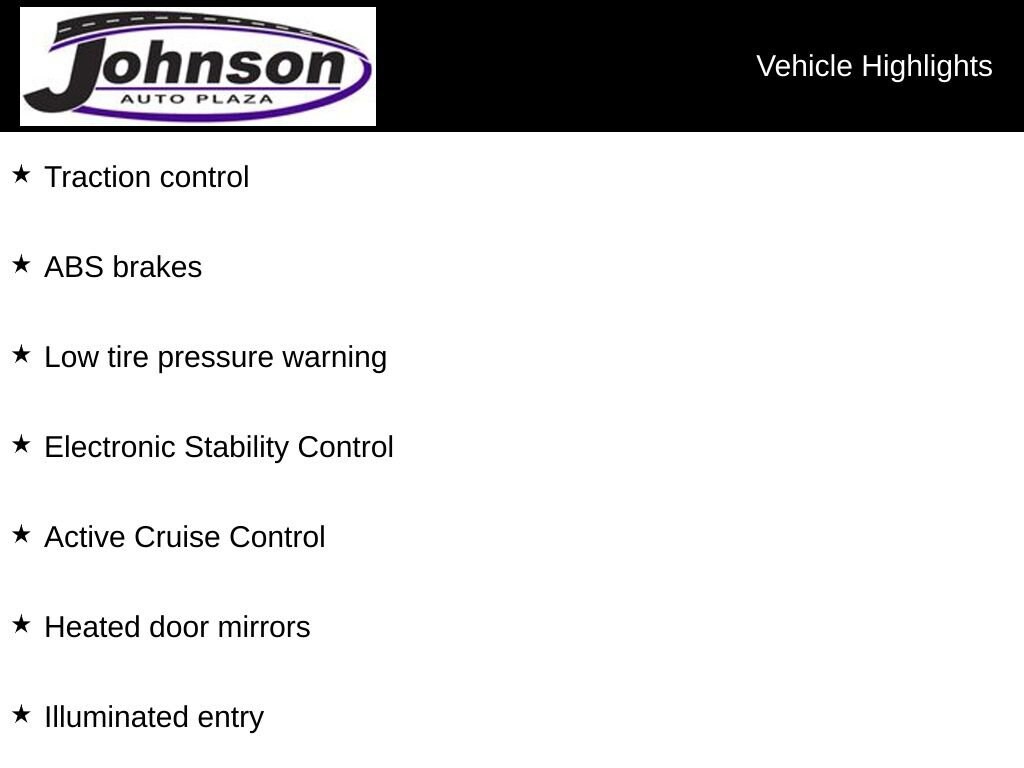 2023 Toyota Tacoma SR Ice Cap 4WD 2.7L SMPI DOHC 6-Speed Automatic4WD, ABS brakes, Active Cruise Control, Electronic Stability Control, Heated door mirrors, Illuminated entry, Low tire pressure warning, Traction control.Odometer is 8384 miles below market average!Visit www.johnsonautoplaza.com for more information. Feel free to browse our inventory online, request more information about vehicles, set up a test drive or inquire about financing.We look forward to serving you! 4WD, ABS brakes, Active Cruise Control, Electronic Stability Control, Heated door mirrors, Illuminated entry, Low tire pressure warning, Traction control, 16 Styled Steel Wheels, 6 Speakers, Air Conditioning, AM/FM radio: SiriusXM, Anti-whiplash front head restraints, Apple CarPlay/Android Auto, Auto High-beam Headlights, Axle Ratio: 4.30, Brake assist, Bumpers: body-color, Driver door bin, Dual front impact airbags, Dual front side impact airbags, Emergency communication system: Safety Connect (1-year trial), Exterior Parking Camera Rear, Fabric Seat Trim, Front anti-roll bar, Front Bucket Seats, Front Center Armrest, Front reading lights, Front Seats, Front wheel independent suspension, Knee airbag, Occupant sensing airbag, Outside temperature display, Overhead airbag, Overhead console, Passenger cancellable airbag, Passenger door bin, Power door mirrors, Power steering, Power windows, Radio: Audio, Rear step bumper, Speed control, Speed-sensing steering, Steering wheel mounted audio controls, Tachometer, Telescoping steering wheel, Tilt steering wheel, and Variably intermittent wiperS.