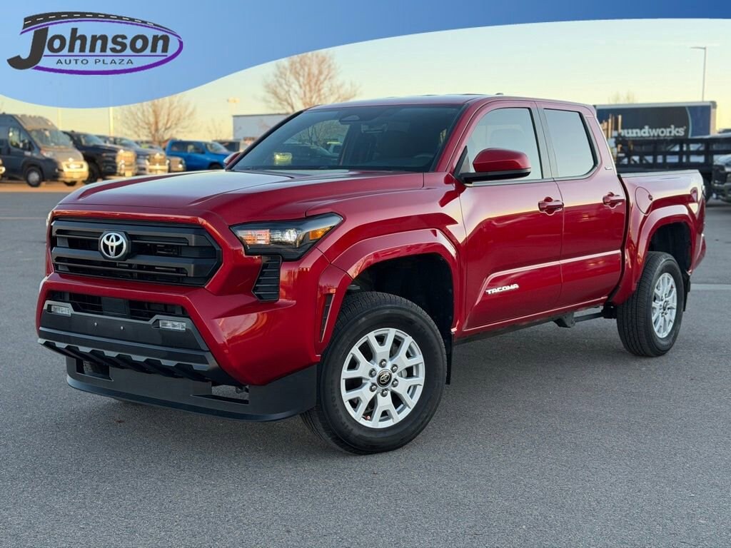 2024 Toyota Tacoma SR5 Supersonic Red RWD 2.4L 4-Cylinder 8-Speed Automatic21/26 City/Highway MPGVisit www.johnsonautoplaza.com for more information. Feel free to browse our inventory online, request more information about vehicles, set up a test drive or inquire about financing.We look forward to serving you! 4-Wheel Disc Brakes, 6 Speakers, ABS brakes, Air Conditioning, Alloy wheels, AM/FM radio: SiriusXM, Anti-whiplash front head restraints, Apple CarPlay/Android Auto, Auto High-beam Headlights, Auto-dimming Rear-View mirror, Brake assist, Bumpers: body-color, Driver door bin, Dual front impact airbags, Dual front side impact airbags, Electronic Stability Control, Emergency communication system: Safety Connect (1-year trial), Exterior Parking Camera Rear, Four wheel independent suspension, Front anti-roll bar, Front Bucket Seats, Front Center Armrest, Front fog lights, Front reading lights, Fully automatic headlights, Heated door mirrors, Illuminated entry, Knee airbag, Low tire pressure warning, Occupant sensing airbag, Outside temperature display, Overhead airbag, Overhead console, Panic alarm, Passenger door bin, Power door mirrors, Power steering, Power windows, Radio: 8 Toyota Audio Multimedia, Rear step bumper, Rear window defroster, Remote keyless entry, Speed control, Speed-sensing steering, Split folding rear seat, Steering wheel mounted audio controls, Tachometer, Telescoping steering wheel, Tilt steering wheel, Traction control, Trip computer, Variably intermittent wipers, and Wheels: 17 Styled AlloY.
